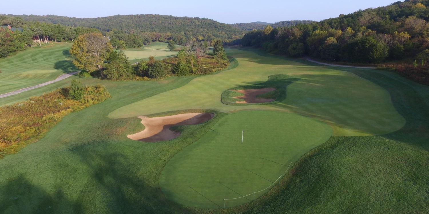 As you drive through the front gate at Old Kinderhook, you feel like you're entering another land...Ireland is a comparison frequently mentioned. Nestled in the Missouri Ozark hills, the course is renowned for its unsurpassed drama: valleys, waterfalls, hills, trees and water hazards, plus its beautiful lake setting. The elevation changes and breathtaking views will thrill you at every hole. But the setting isn't the only attribute worth noting; Old Kinderhook's course conditions are meticulously maintained and consistently in outstanding conditions. Not to mention, Tom Weiskopf designs are typically very player friendly.