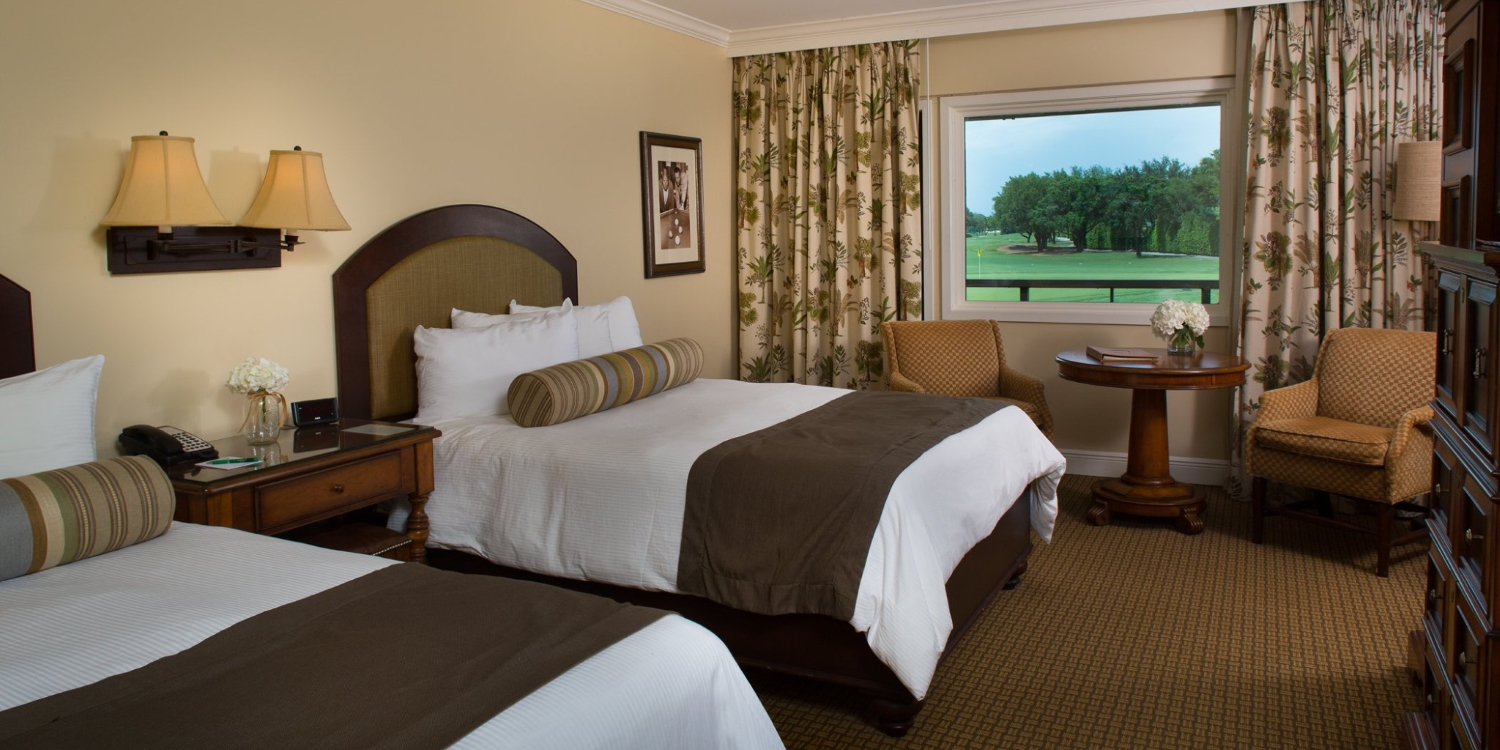 Complimentary MADE-TO-ORDER Breakfast, Daily! Stay feet away from the first tee at Arnold Palmer's Bay Hill Club & Lodge with charming accommodations available right on site. Our newly remodeled 65-room golfers lodge is attached to the clubhouse and features King & Queen/Queen rooms, Jr. Suites, and One-Bedroom Executive Golf Suites.