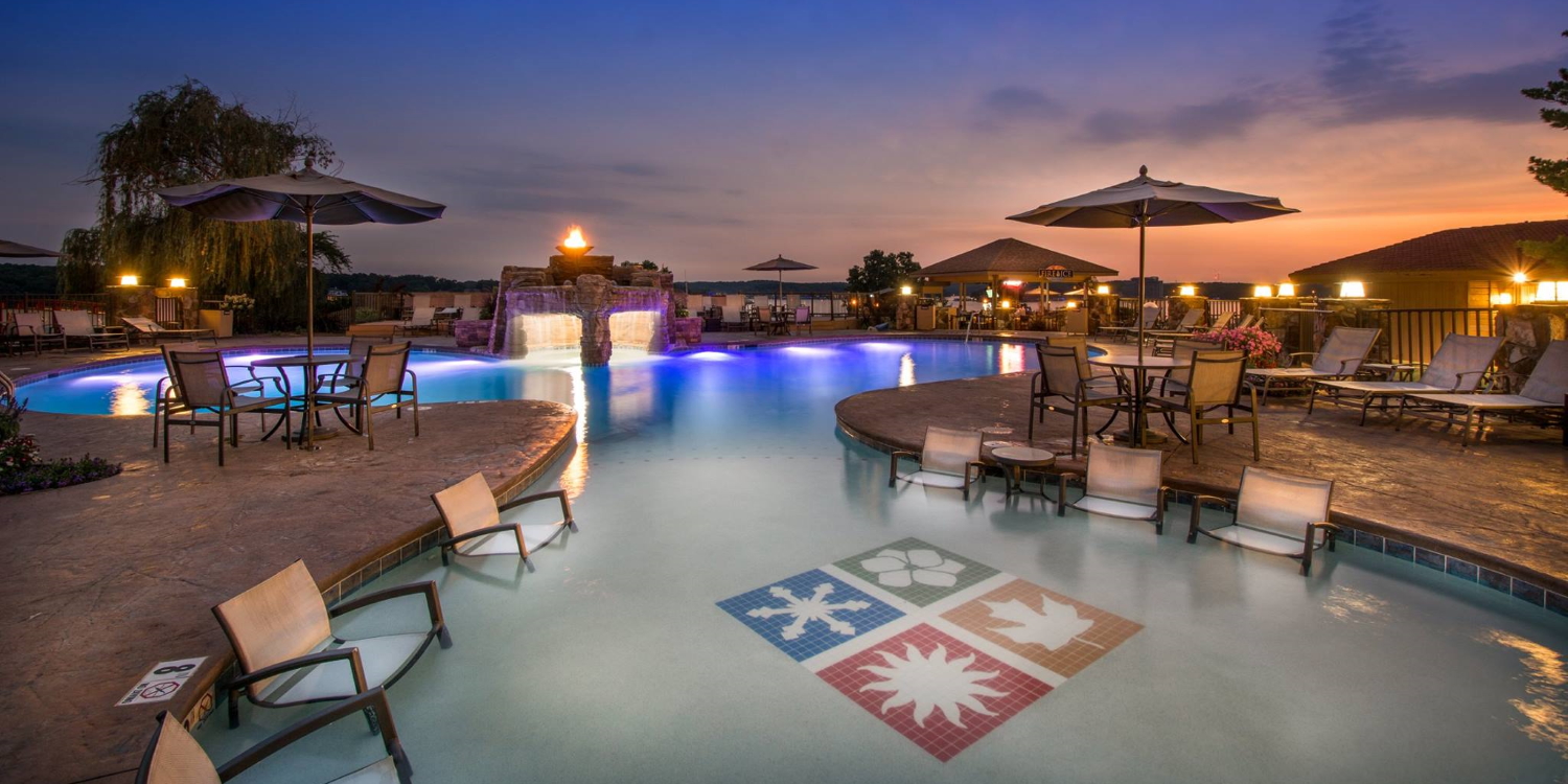 Located at Missouri's Lake of the Ozarks this waterfront resort offers 354 rooms including the new luxury Avila condominiums. The Lodge boasts great dining options including the new poolside Parrot Bar, indulge with your favorite cold beverage or dine in Breezes Restaurant serving breakfast and lunch with indoor and outdoor seating or finish the day in HK's Steakhouse overlooking the beautiful gardens. After a day of golfing, boating, trapshooting or one of the many other activities available relax in Spa Shiki our award winning 15,000 sq. foot Spa.